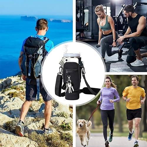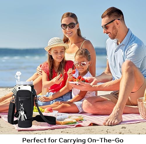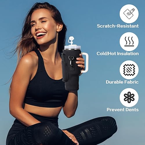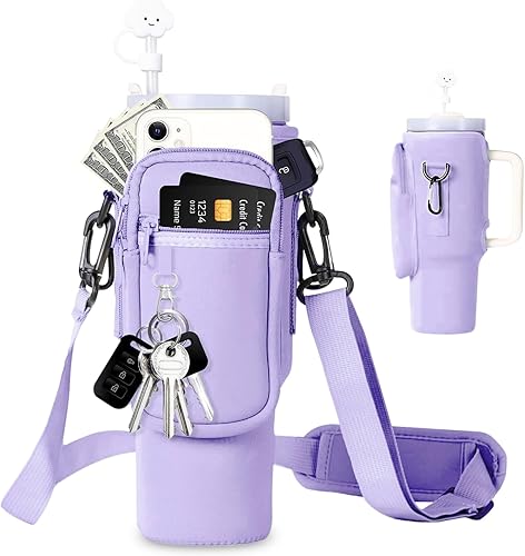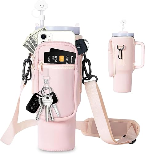 EEPLUYTY Sac pour Coupe Stanley De 1,2 l/40 Oz, Stanley Cup Sac d'Accessoires, Porte-Clés, Mousqueton Et Bandoulière Réglable (Modern, Blanc cassé)