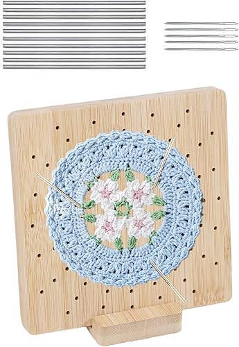 Planche De Blocage En Bois Pour Crochet, Planche De Blocage Pour Carrés Granny Avec 10 Épingles De 2 Tailles (15 Cm/19,5 Cm), 5 Aiguilles À Tricoter Et Tapis De Blocage Pour Projets De Tricot