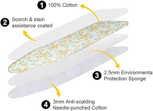 EIMZU Housse de table à repasser, 125 x 45 cm, élastique, en coton, pour repassage rapide et facile, pour centrale vapeur et fer à repasser à vapeur
