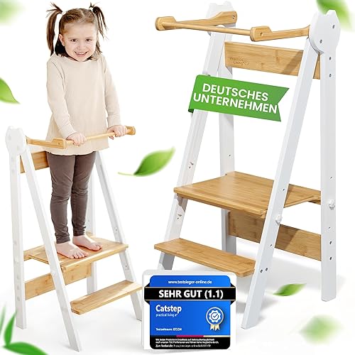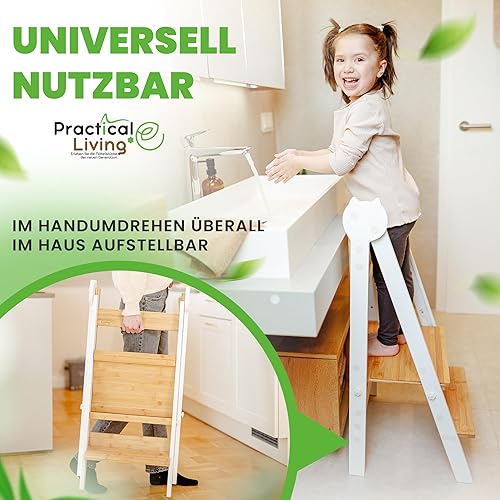 practical living e* Tour d'apprentissage Montessori peu encombrante et réglable en hauteur en bambou pour enfants à partir de 1 an (pliable) Tour d'apprentissage, marchepied, tour d'apprentissage