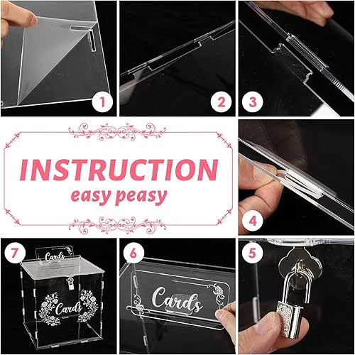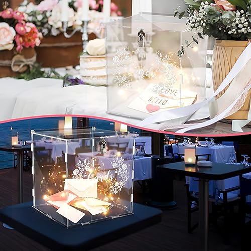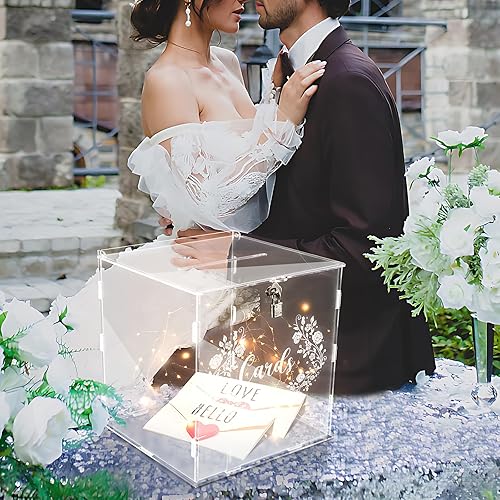 Cinnani Boîte à Cartes de Mariage en Acrylique, Boite Transparente Mariage avec Serrure, Grande Boîte aux Lettres Urne Mariage pour Anniversaire, Baptême, Boite Enveloppe Mariage (25x24x24cm)