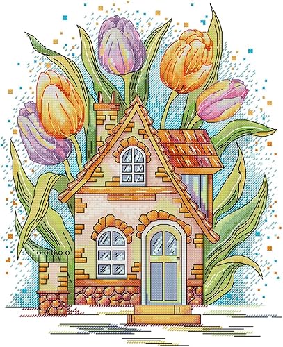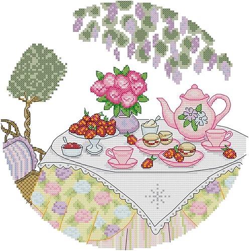 Awesocrafts Point de Croix Kit Complet Estampé, famille Peter Rabbit Estampillé 11CT 3 brins 26×28cm Broderie Point de Croix Imprimé