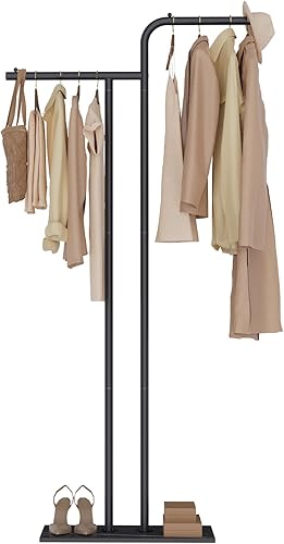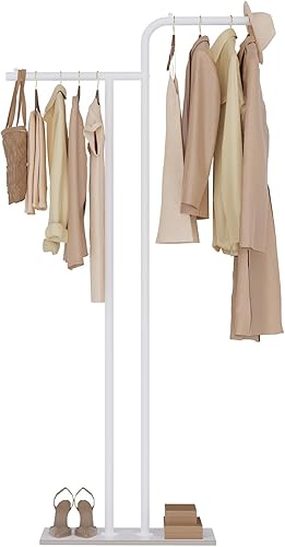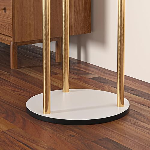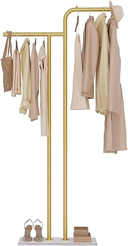 GUOHNHE Métal Porte Manteau Sur Pieds, Multifonctionnel Meuble D'entrée avec Dalles de Roche Lourdes, Moderne Portant à Vêtements à Double Colonne, 180 cm, Jaune Doré, GYJ301WJ