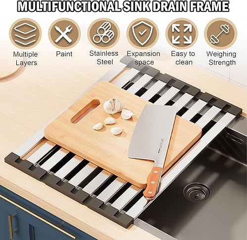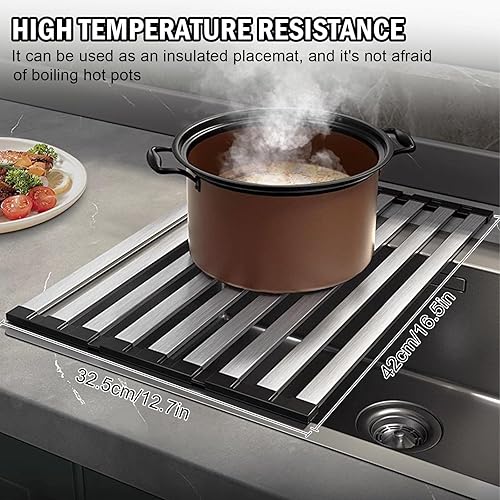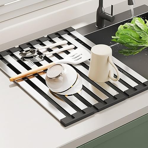 Égouttoir à Vaisselle, égouttoir en Acier Inoxydable pour sécher la Vaisselle au-Dessus de l'évier, égouttoir de Cuisine Pliable, résistant à la Chaleur pour Les Tasses, Les Fruits et Les légumes