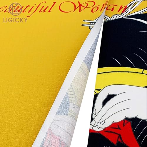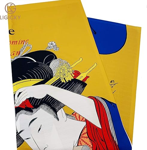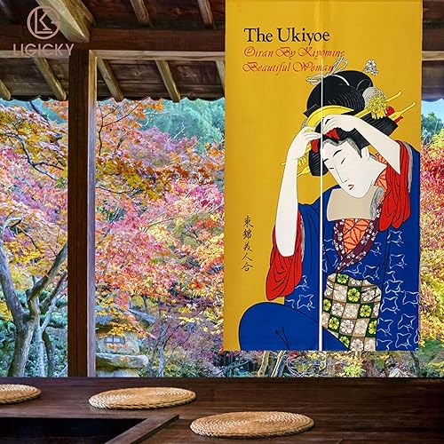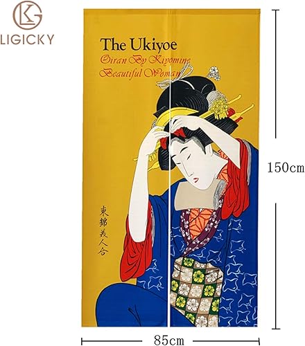 Ligicky Noren Rideau de porte et fenêtre de style japonais Ukiyoe Geisha Tapisserie asiatique pour la maison et la cuisine 85 cm de large x 150 cm de long