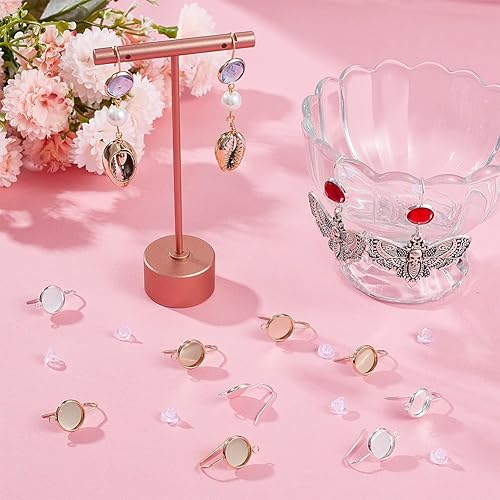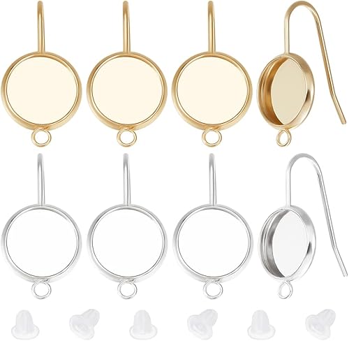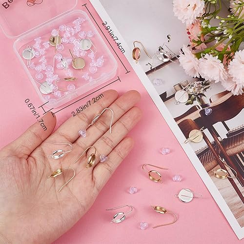 Beebeecraft 1 boîte de 24 Crochets de Boucles d'oreilles Vierges en Laiton Plaqué Or 18 carats et Argent Sterling 2 Couleurs, Plateau Rond Plat de 10 mm avec Fil d'oreille, d'oreilles DIY