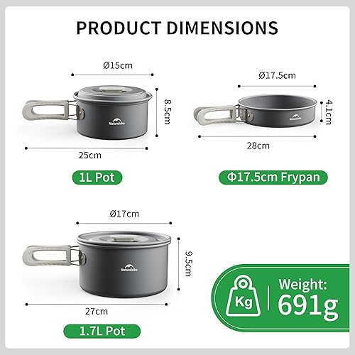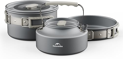 Naturehike Camping Set de Casseroles et Poêles Outdoor Batterie de Cuisine Bouilloire Anti-adhésive pour 2-6 Personnes Multifonctionnel Léger et Portable Convient pour la Survie et L'Aventure