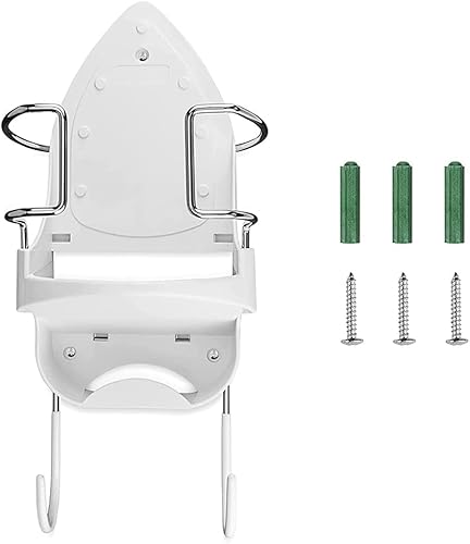 sunwes Fer à Repasser Support Mural Support de Fer éLectrique Fer et Planche à Repasser Organisateur de Stockage éTagèRe avec Crochets Amovibles -2, Blanc