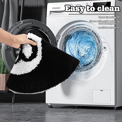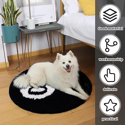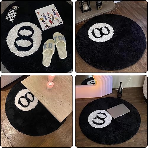 WIYETY Tapis pour 8 balles : 60 cm lavable décor antidérapant floqué, tapis de billard, tapis noir et blanc, rond touffeté doux, tapis de sol pour salon, chambre à coucher, salle à manger