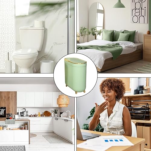 Haodou. Poubelle en plastique sans couvercle - Corbeille à papier pour salle de bain, bureau, cuisine, salon (vert crépuscule)