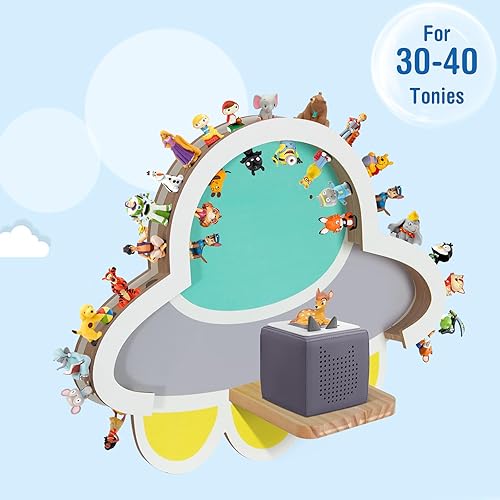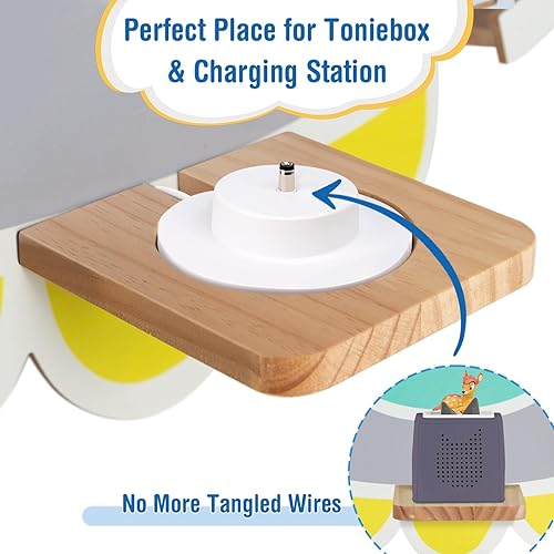 Todeco Étagère magnétique pour Toniebox et Tonies, Jusqu'à 30-40 Tonies, Murale Étagère en Bois pour boîte à Musique pour Enfant, UFO