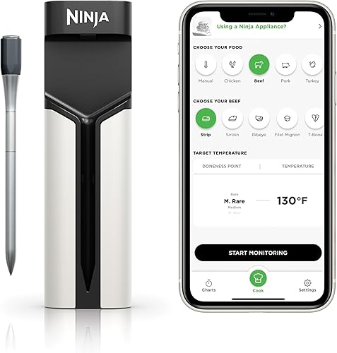 Ninja ProChef WP100EU Thermomètre à viande numérique sans fil pour cuisine intérieure et extérieure avec portée Bluetooth de 50 m et autonomie de 30 heures, connexion par application, résistant à la