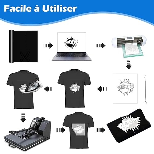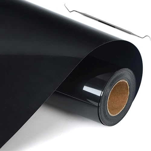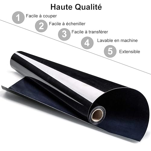 Vinyle Thermocollant Noir Transfert Textile - 30,5 cm × 3 m Flex Thermocollant pour Tissu, pour Cricut Maker, Découpe Silhouette, vêtements, bonnets, pantalons, autres tissus