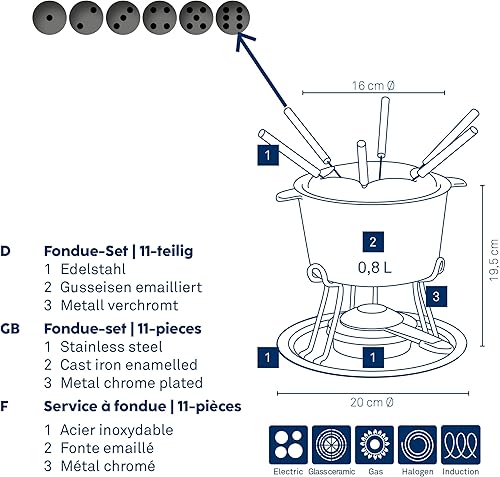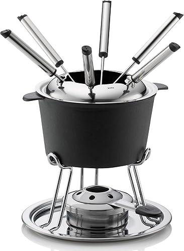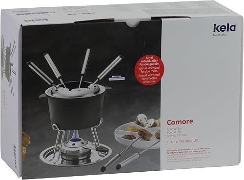 kela 16639 Service à Fondue Comore 20x19,5cm 11 pièces, Acier Inoxydable, Argent/Noir, 20 x 20 x 19,5 cm
