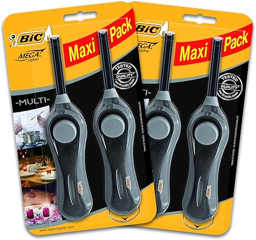 BIC Megalighter Lot de 4 briquets multifonctions Noir