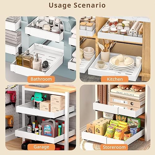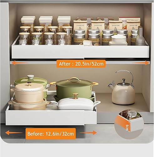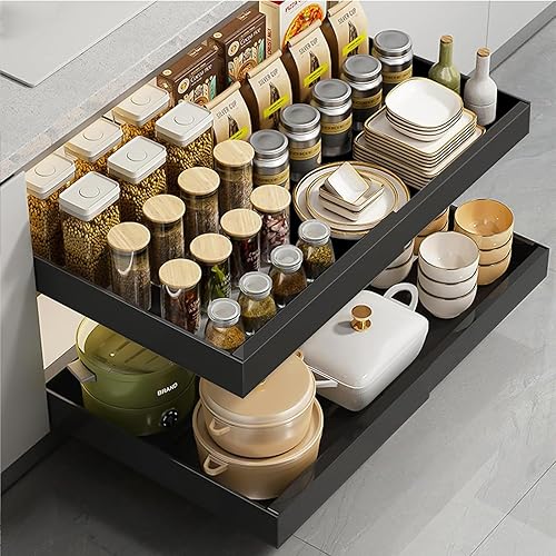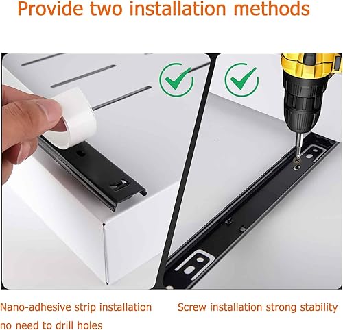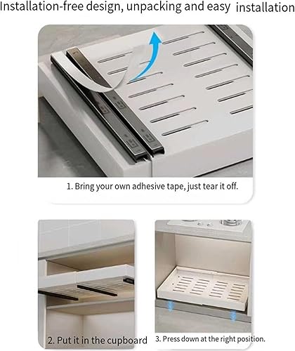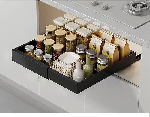 XeCeXe Tiroir de rangement d'armoire extensible, tiroir d'armoire de style tiroir, étagère de rangement coulissante adhésive pour cuisine (Black, 53x(32~52) cm 1pc)