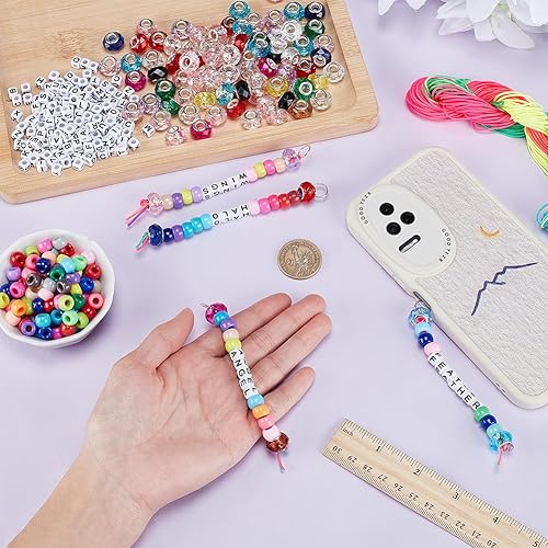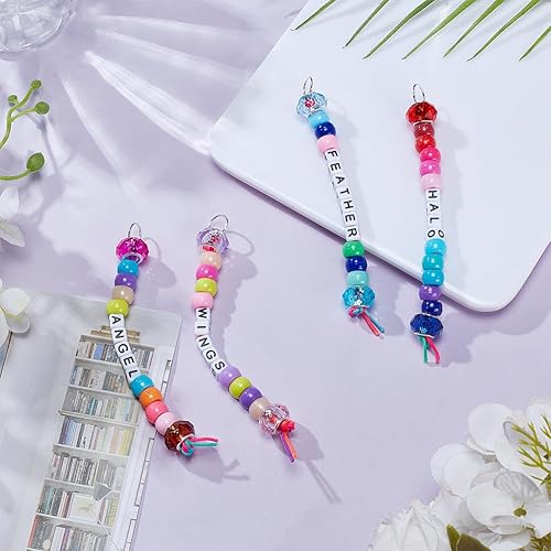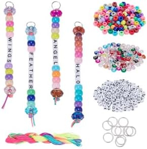 FREEBLOSS 554Pcs Kit de fabrication de porte-clés en perles acryliques Porte-clés en perles de lettres Kit porte-clés en perles Porte-clés en perles Alphabet Bead Beelry Keychain