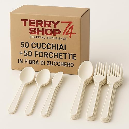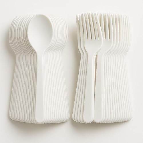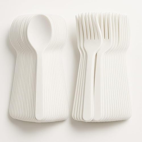 100 couverts en fibre de sucre 100 pièces en kit 50 fourchettes + 50 couteaux ou 50 fourchettes + 50 cuillères (50 cuillères + 50 fourchettes)