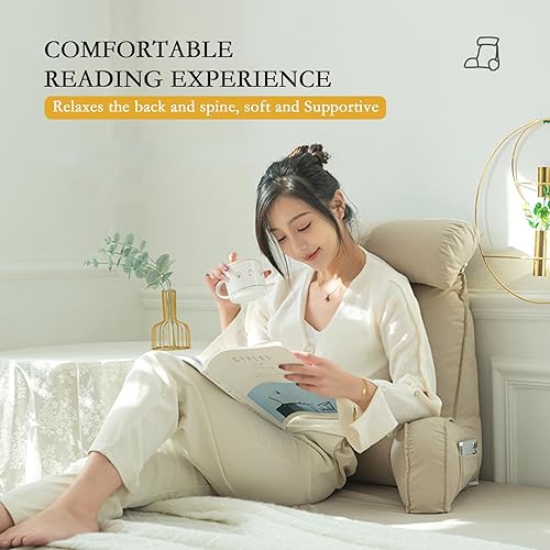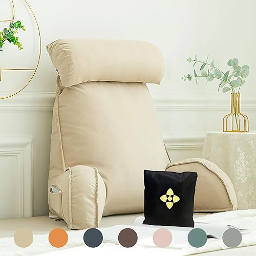 Oreiller De Lecture avec Accoudoirs, Grand Lit Dossier Coussin, Coussin Lecture Lit avec Repose-Nuque, Coussin Cale Dos Canapé pour Lit & Fauteuil, Idéal pour Travailler, Lire 75cm×40cm×58cm