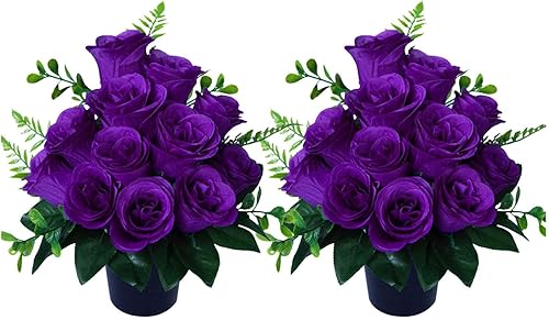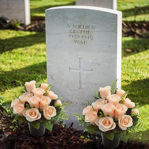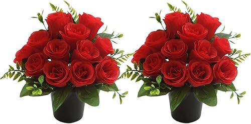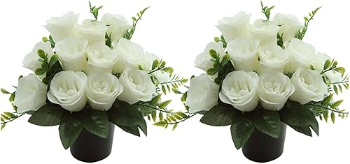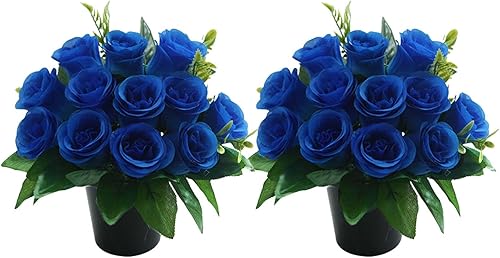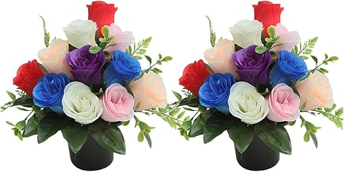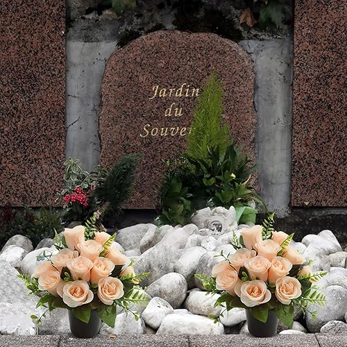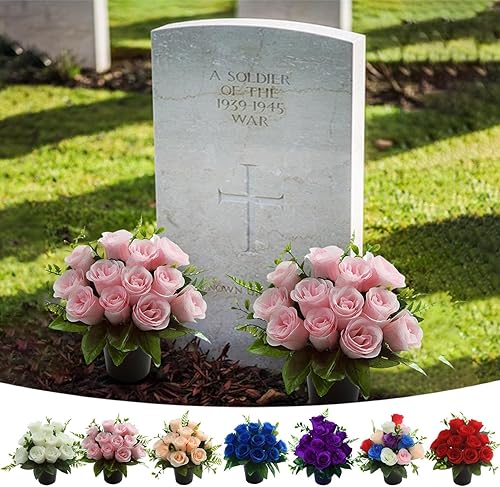 2Pcs Fleurs De Cimetière Artificielle,Petites Plantes Artificielles,La Décoration De Pierre Tombale De Cimetières pour Funérailles Commémoratives,Cimetière, Décor avec Vase (B)