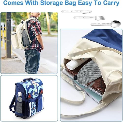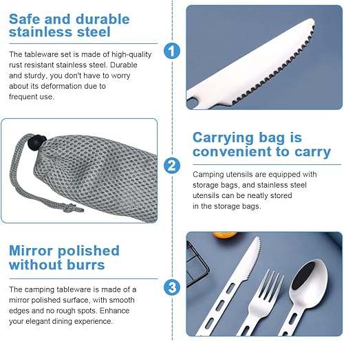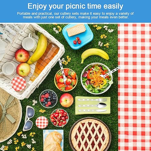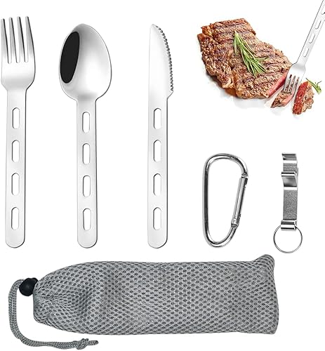 REFORUNG Ensemble de couverts en Acier Inoxydable Lot de 5 Couverts de Voyage Couverts de Camping de Déjeuner de Couverts Transportables avec fourchette, cuillère, Ouvre-bouteille, Sac de Rangement