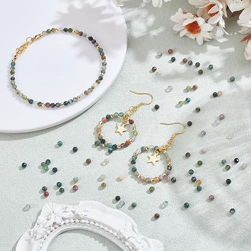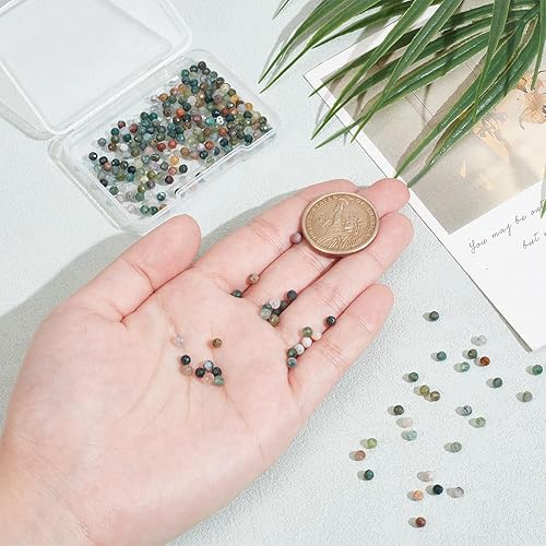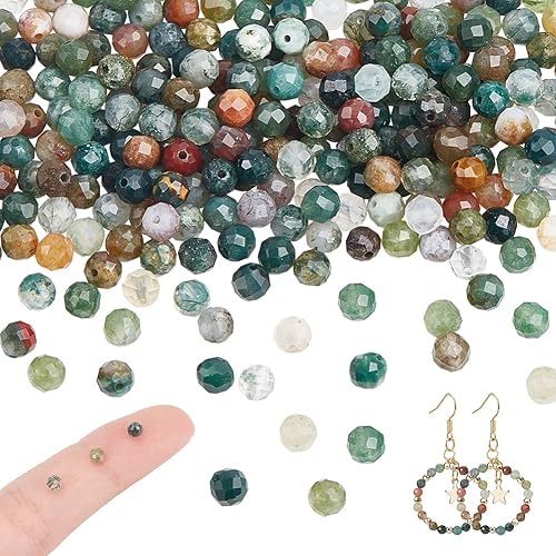 NBEADS Environ 272 Pcs Perles D'Agate Indiennes Naturelles, 3mm Perles en Pierres Précieuses Naturelles Perles Rondes à Facettes en Vrac pour la Fabrication de Colliers Bracelets Bijoux Trou: 0.8mm