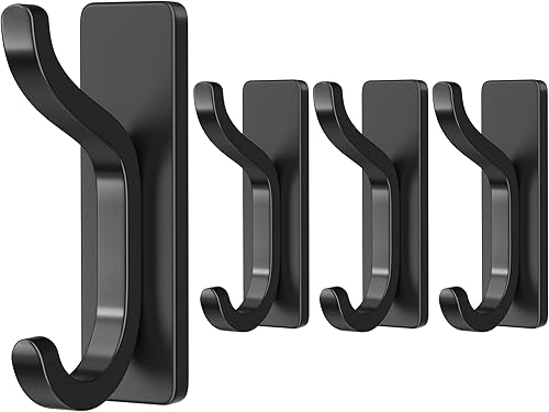 pickpiff Crochets Adhésifs Muraux - Support Mural Résistant 6 kg, Patère Métal Étanche Antirouille, Porte-Manteau Sans Percage, Pour Serviette, Cuisine, Salle de Bain, Porte, Noir, 4 Pièces