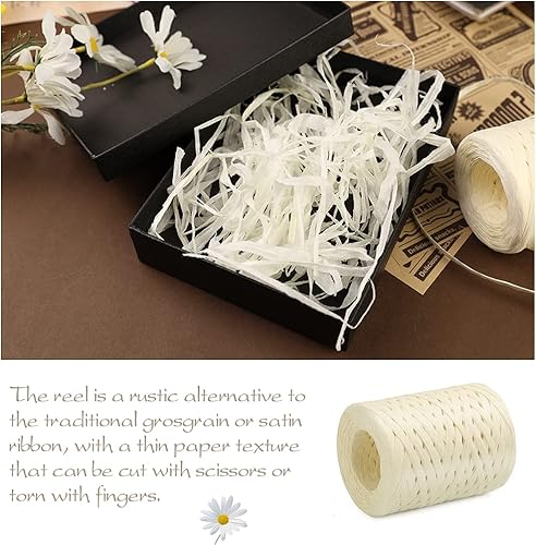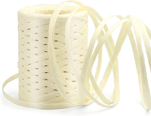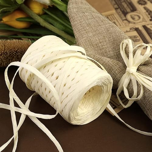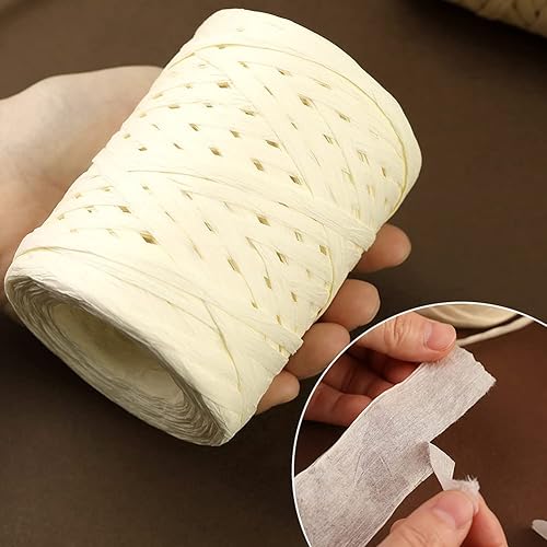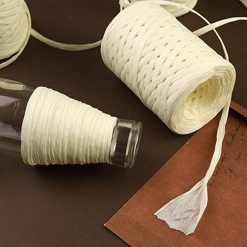 KA MAI KA Ficelle de papier beige Raffia - 100 m de ruban en papier naturel - Pour emballage cadeau, projets d'artisanat, décoration, tissage et jardinage.