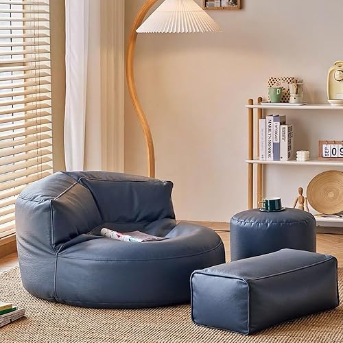 SXBCyan Grande Housse De Pouf en Simili Cuir for Adultes, sans Remplissage, Lavable, Ultra Douce, for Sièges Au Sol, Salon De Détente, Jeux Vidéo, Soirée Cinéma,(Black,3 in 1 Cover)