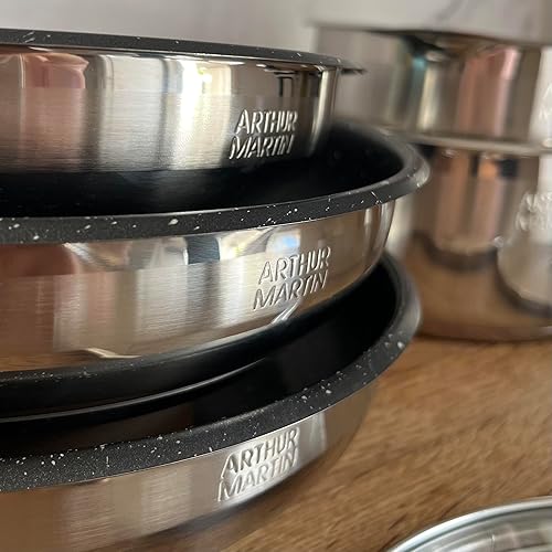SHOP-STORY - AM2493 : Batterie de Cuisine 8 Pièces Arthur Martin Poêles et Casseroles en Inox avec Accessoires, Tous Feux Dont Induction
