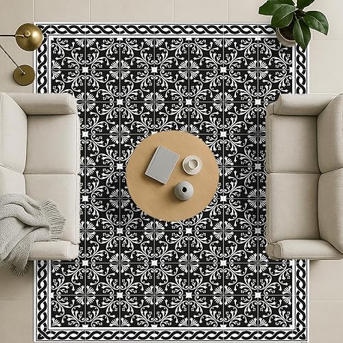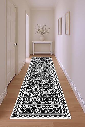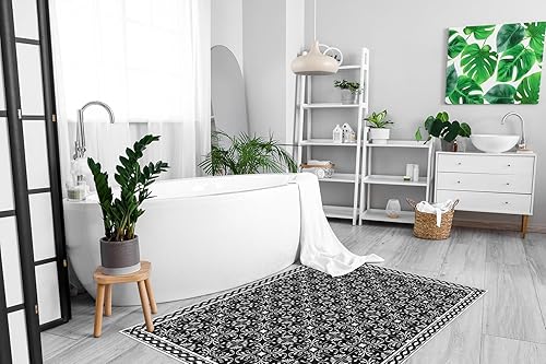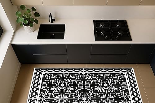 DobleUve Estudio Tapis Vinyle 37 | Noire | 47x80 cm | Tapis Cuisine | Tapis de Salon Antidérapant Antifongique Ignifuge | Tapis Enfants | Tapis Bain PVC | Tapis PVC
