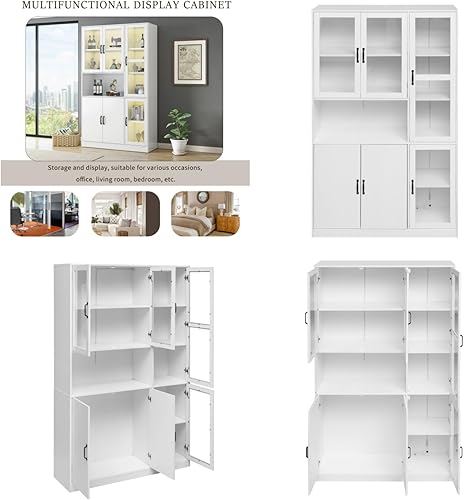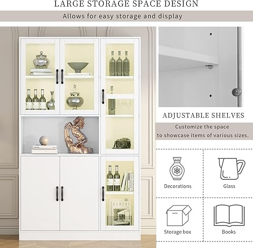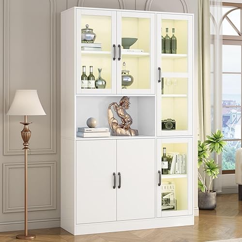 KOMHTOM Vitrine avec étagères en Verre Vitrine de Salon avec 1 tiroir et 1 Porte, Buffet LED pour Salon Chambre à Coucher Couloir Salle à Manger (D)