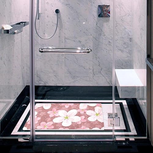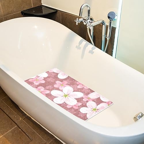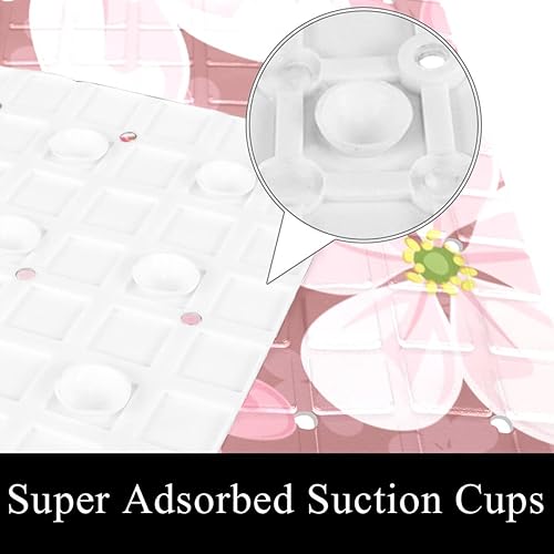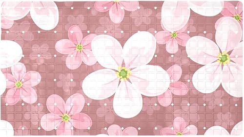 Tapis de douche antidérapant avec ventouses et fond de drainage avec fleurs de cerisier, tapis de bain antidérapant, taille moyenne, 68,9 x 38,1 cm