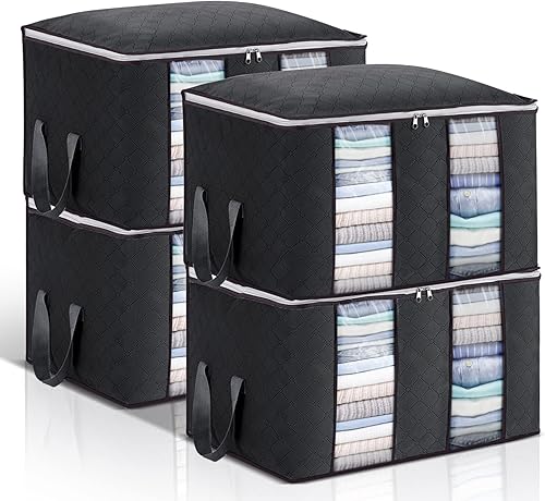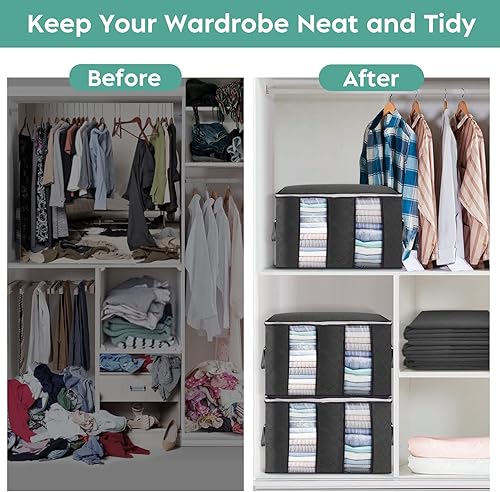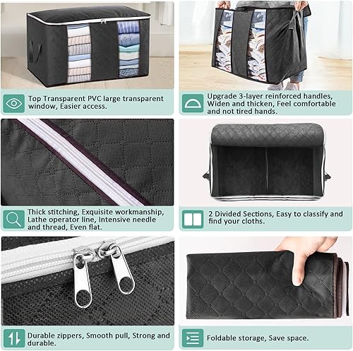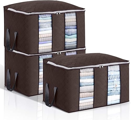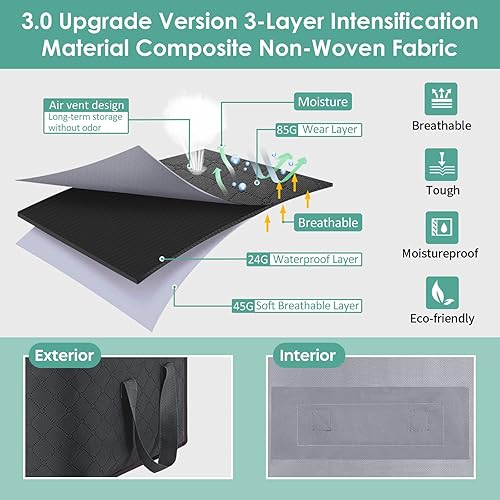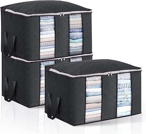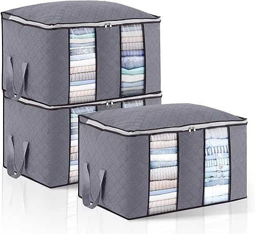 Sacs de Rangement pour Vêtements 3 Paquets, Rangement sous Lit de Grande Capacité avec Fermetures Éclair, Poignées et Séparateurs, Boîtes de Rangement avec Tissu Épais, pour Couettes, Couvertures