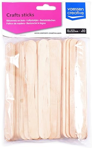 Vaessen creative Bâtonnets de Glace en Bois, 80 Unités, 1,8 x 15 cm, Œuvres d'art en 3D, Loisirs Créatifs pour Enfants, Décoration Intérieure, etc, Bouleau Naturel