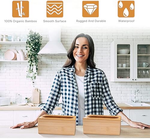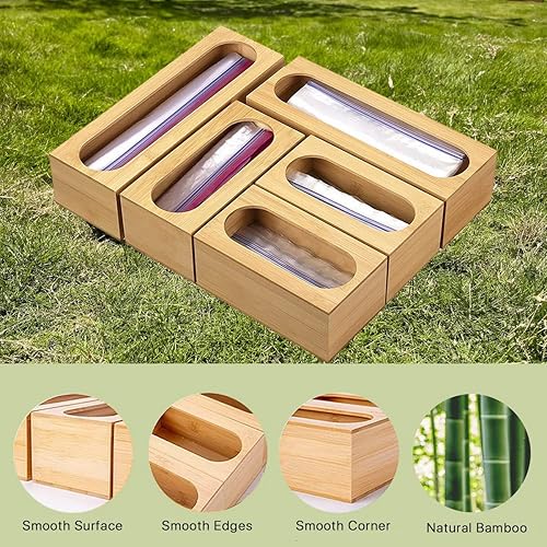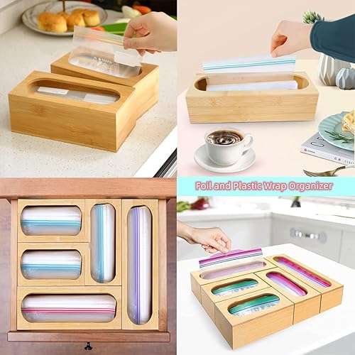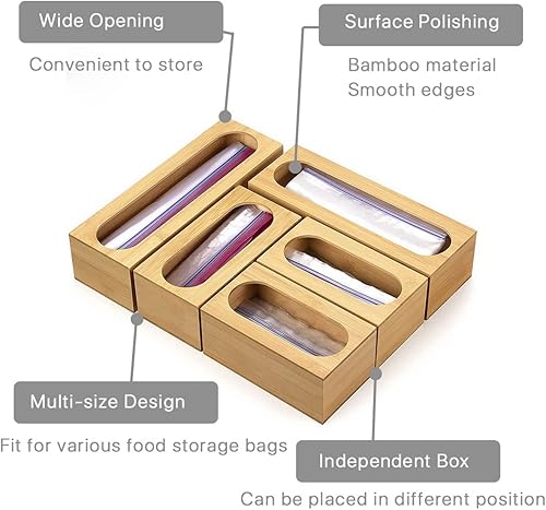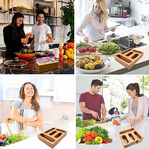 Generic - Organisateur de tiroir en bambou rustique - Contenant de stockage alimentaire - Sacs de différentes tailles - Compatible avec la plupart des marques