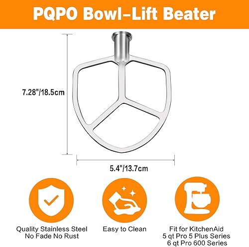 Batteur plat en acier inoxydable compatible avec les batteurs Kitchen Aid de 6 litres