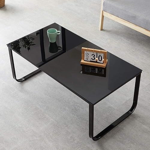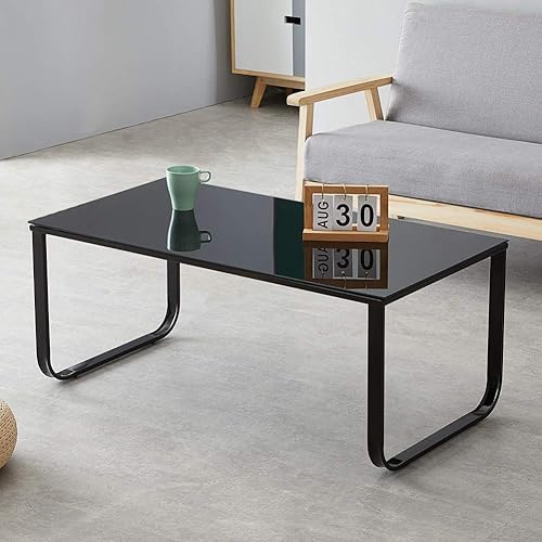 TUKAILAi Table Basse Salon en Verre, Table Basse d'Appoint Moderne Cadre en métal, Table de Cafe Rectangulaire pour Chambre Meubles de Maison 100x 50 x 42 cm (Noir)