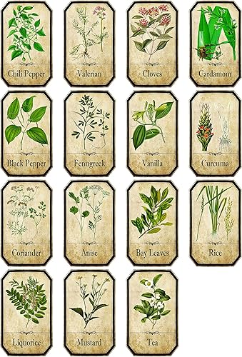 Lot de 15 étiquettes style vintage apothicaire pour épices et herbes aromatiques dos adhésif en vinyle résistant à l’eau et à l’huile