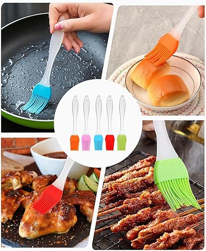 MYGLOAR Paquet de 5 pinceaux à pâtisserie, pinceaux à pâtisserie en Silicone, pinceaux en Silicone, pinceaux de Cuisine, pinceaux à Gril, pinceaux de Cuisson, Silicone de qualité Alimentaire