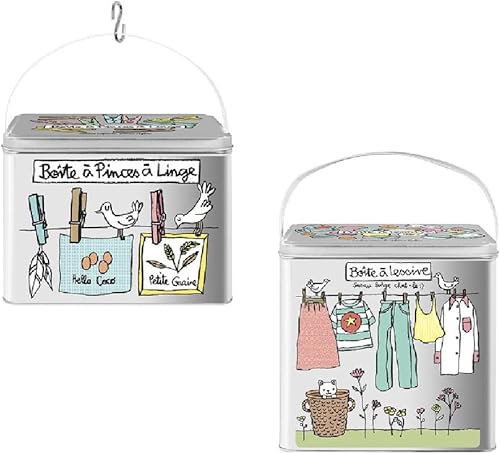 DLP - Lot de 2 Boîtes en Métal - Boîte à Pinces à Linge et Boîtes à Lessive