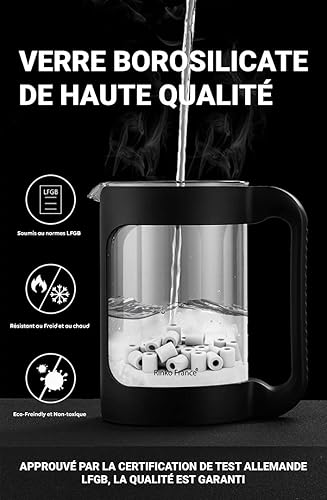 RINKO FRANCE |Carafe d'Eau 1,5 L avec 50 Perles de Céramique EM 100% Purification Naturelle de l'eau Potable| Billes Argile Filtrante Anti Calcaire, Chlore avec Pince en Bambou et E-Book offert