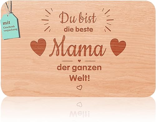 Planche à petit-déjeuner en bois de hêtre avec gravure « Du bist die beste Mama der ganzen Welt » - Idée cadeau pour la fête des mères, un anniversaire, Noël