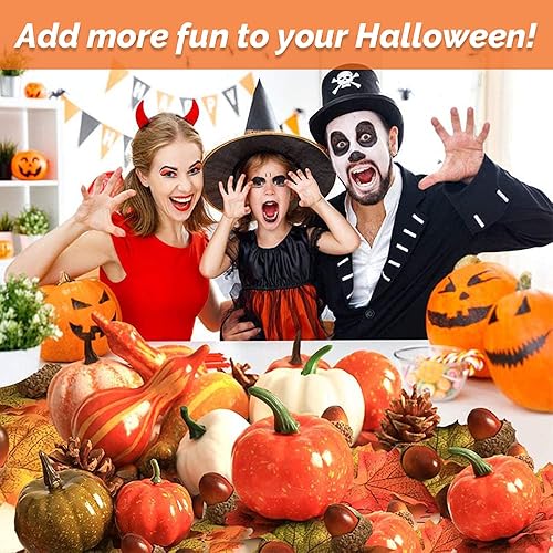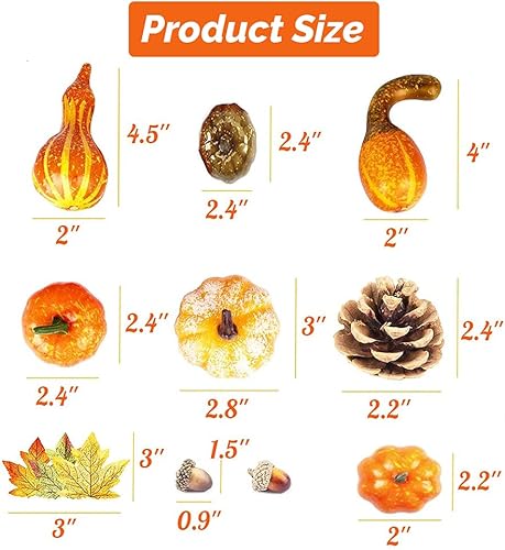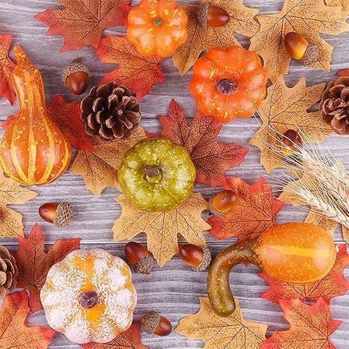 Yaclonq 166 Pcs Citrouilles Artificielles Et Gourdes Feuilles D'érable Pommes De Pin Glands Légumes Artificiels Fausses Citrouilles pour Halloween Thanksgiving Automne Récolte Décoration de La Maison