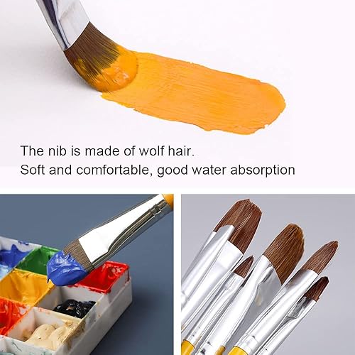 CLVPAI Nylon Pinceaux Artiste,Petits Pinceaux Plats et Ronde Pointus (Pinceau à Huile en nylon-12)