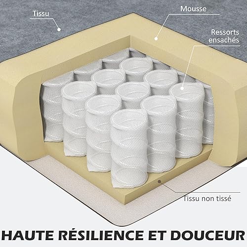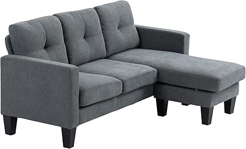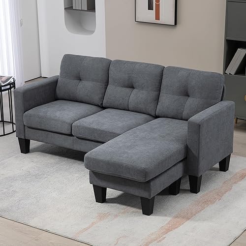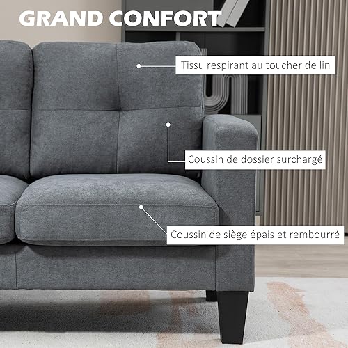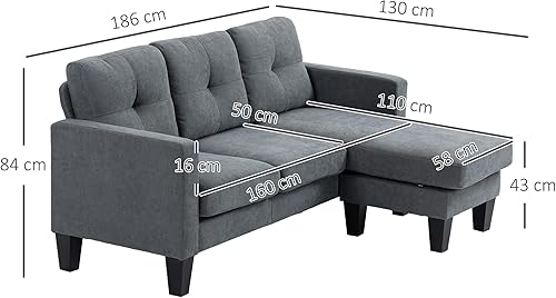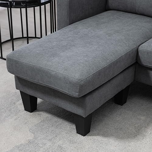 HOMCOM Canapé d'angle 3 Places méridienne réversible Droite ou Gauche, Grand Confort, Gris, Salon, Dossier capitonné
