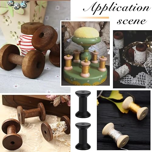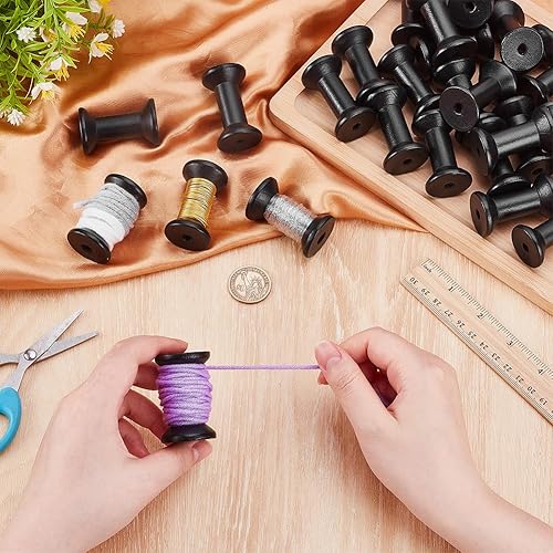 PH PandaHall Bobines de Fil à Coudre en Bois Noir 30pcs Petite Bobine de Fil Vide de 5cm Bobines de Fil à Coudre en Bois Bobine de Ficelle en Vrac pour Cordon de Couture Textile et Artisanal