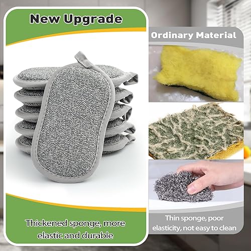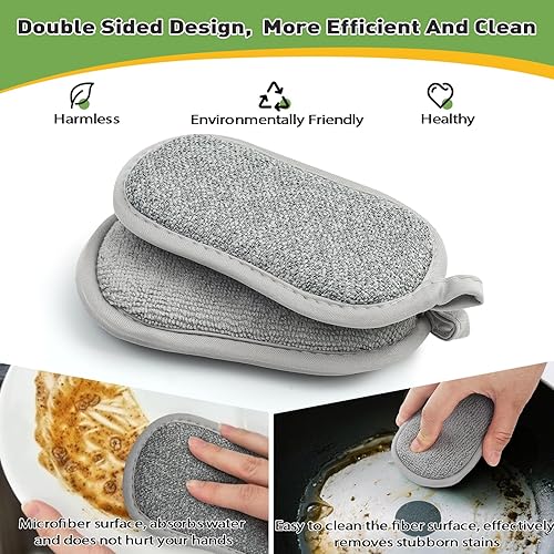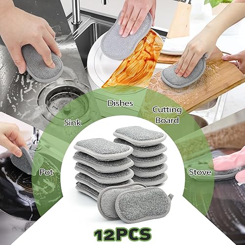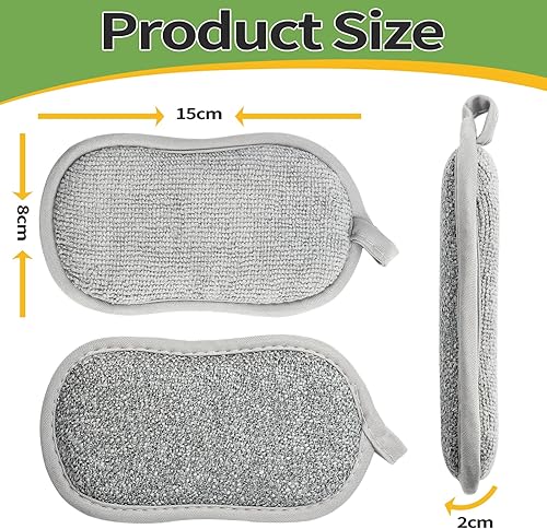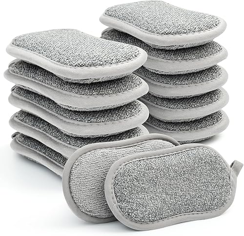 Votoko 12 Pièces Éponge Vaisselle Lavable, Double Faces Eponge Reutilisable Lavable, Anti Rayure, 15×8×2cm Eponges Microfibre pour Vaisselle, Cuisine, Salle De Bain, Verre