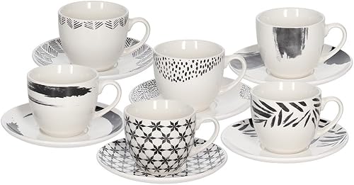 Tognana Zenith, pack de 6 tasses à thé avec soucoupes, porcelaine, noir