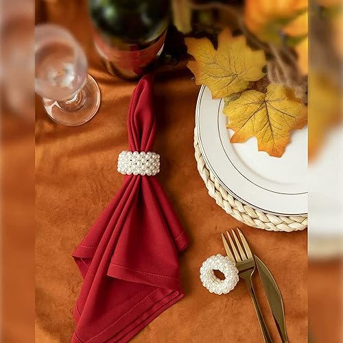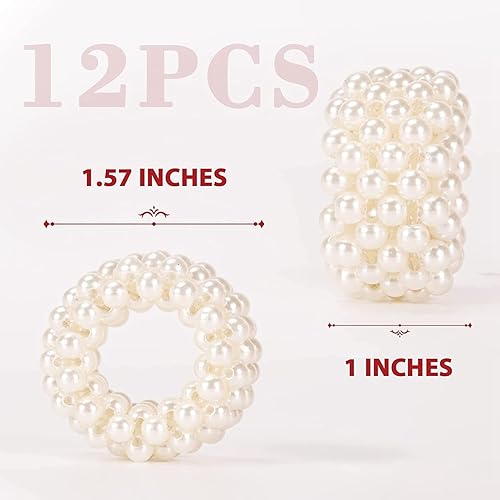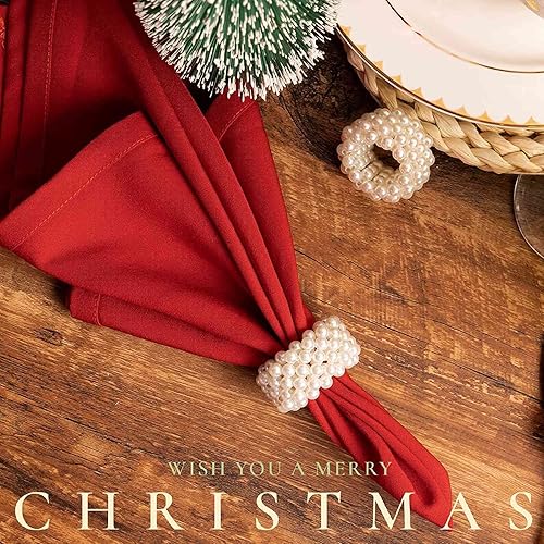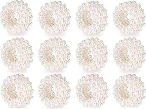 Wanjorlay Lot de 12 serviettes anneau de serviettes de table de mariage avec perle blanche